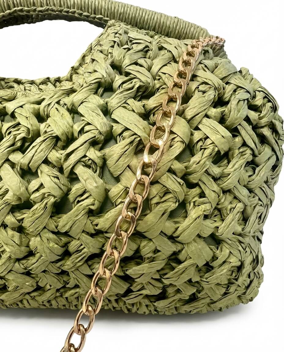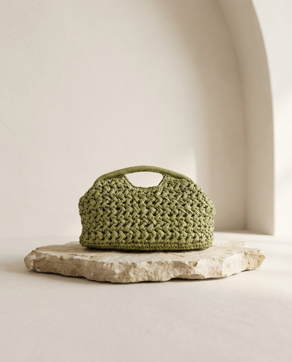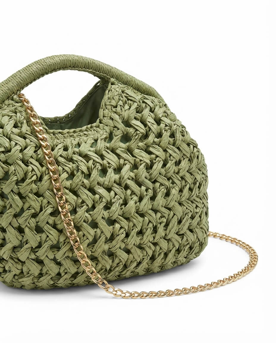 ¿Buscas el complemento perfecto para tus looks veraniegos más especiales? 🌿 Este bolso de mano de papel prensado verde es justo lo que necesitas. Su diseño elegante y su tono verde vibrante aportan ese toque fresco y sofisticado que marca la diferencia. Además, es súper versátil: llévalo en la mano con su asa o cuélgatelo al hombro gracias a su correa dorada que le da un aire chic increíble. Ideal para bodas, eventos o esas tardes de terraza donde quieres ir arreglada pero con estilo natural. ✨ Un bolso que combina moda sostenible con practicidad.