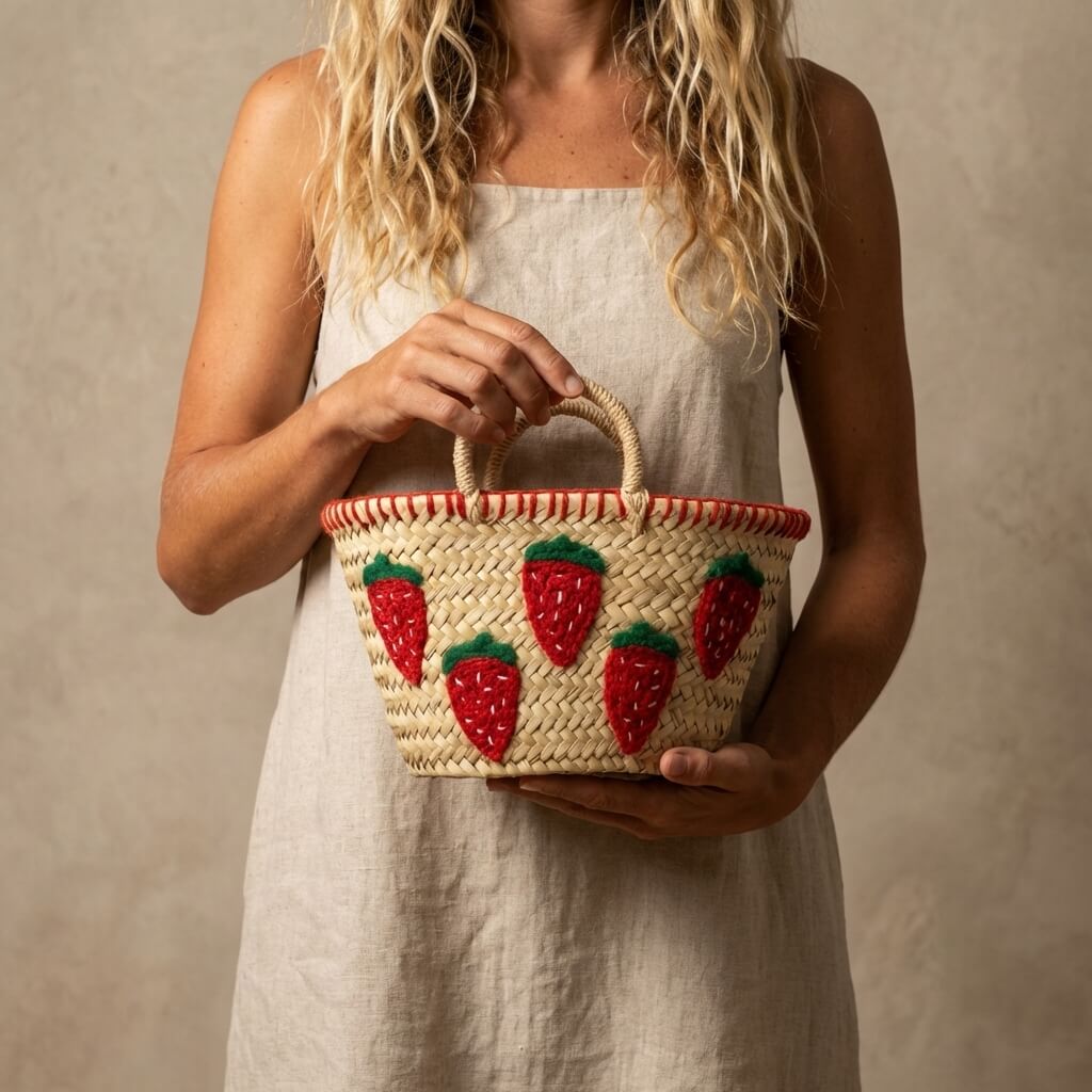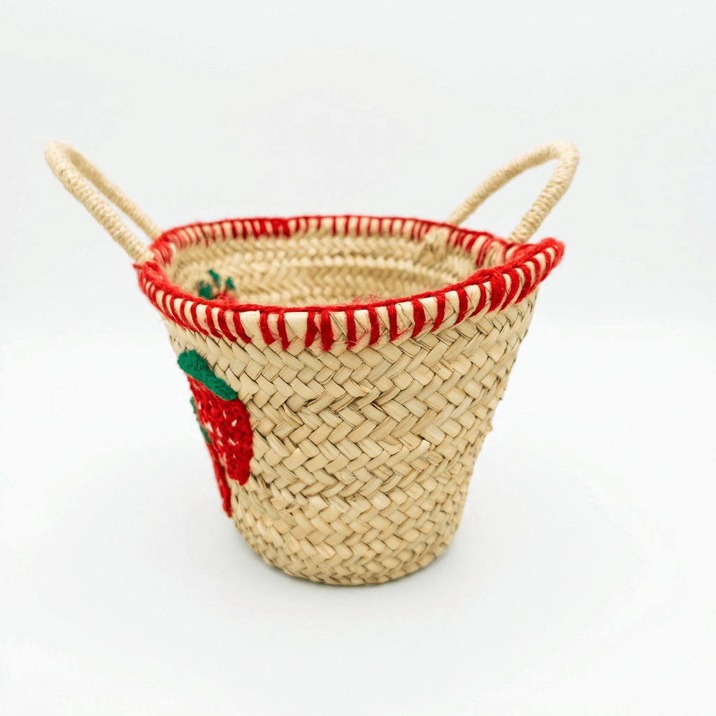 ¿Buscas un accesorio único para tu peque? Este mini capazo de palma Fresas es puro amor 🍓 Fabricado a mano en palma natural con un precioso bordado de lana, combina tradición artesanal y estilo veraniego en un diseño compacto que enamora. Perfecto para que las niñas guarden sus pequeños tesoros, ya sea en paseos, días de playa o como complemento de moda infantil. Al ser 100% artesanal, cada pieza es única con pequeñas variaciones que le dan ese encanto especial ✨
