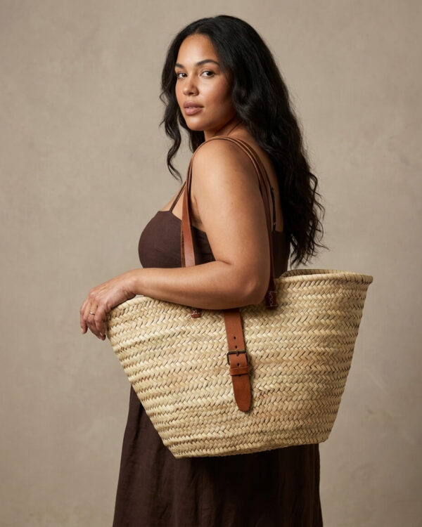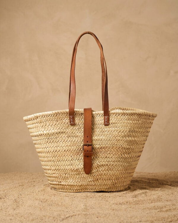 Capazo de Palma con Cierre de Piel y Hebilla | Artesanal Marruecos